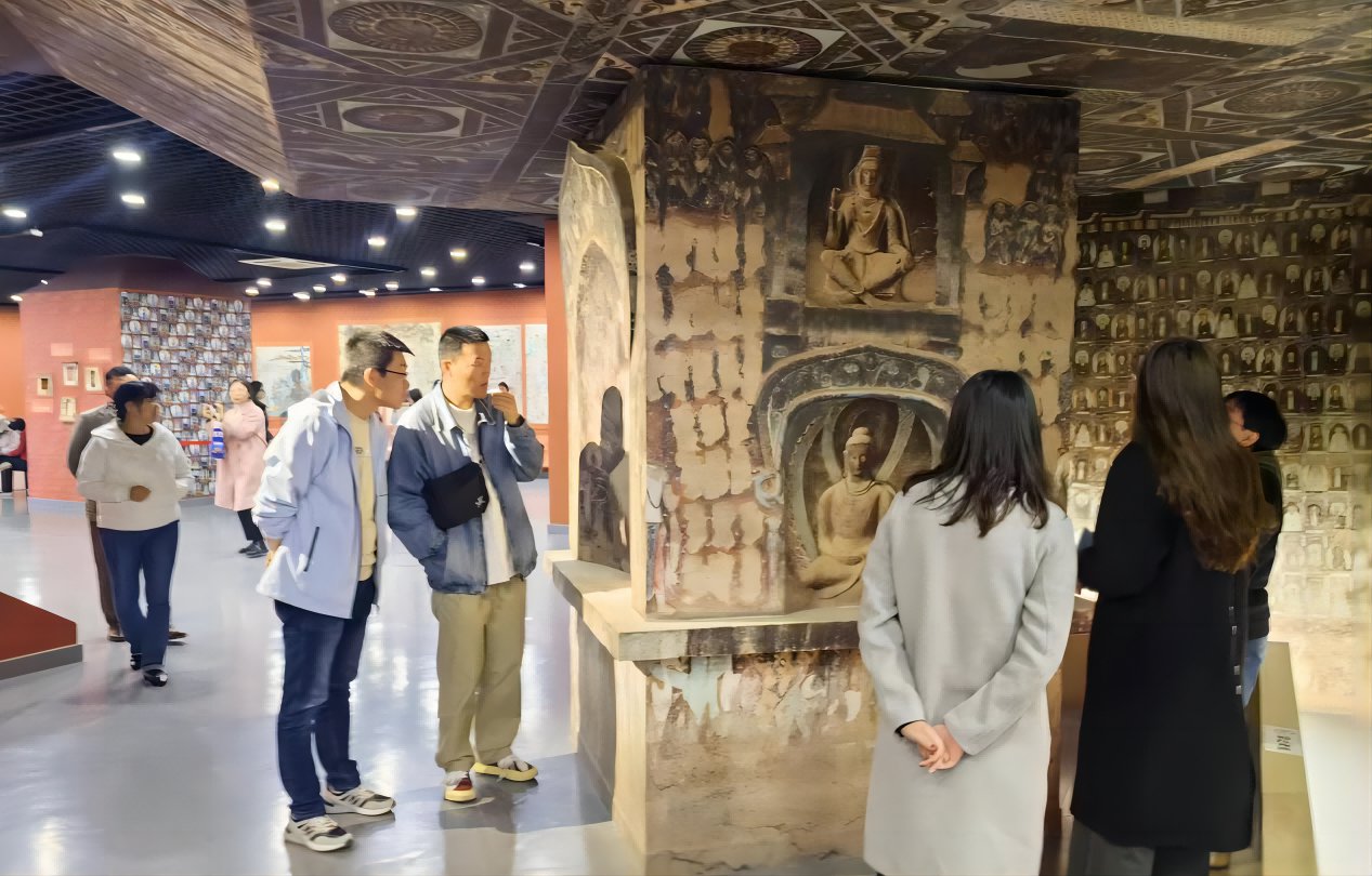 講解員用生動的語言,從敦煌的地理位置、敦煌石窟的文化概說、敦煌石窟內(nèi)容、珍貴價值等燦爛的敦煌文化,講到了“堅守大漠、甘于奉獻、勇于擔當、開拓進取”的“莫高精神”,帶領(lǐng)現(xiàn)場參觀者了解了敦煌石窟藝術(shù)的歷史價值、藝術(shù)價值、科學價值和社會價值,領(lǐng)略了敦煌石窟無與倫比的藝術(shù)魅力,感受了敦煌文化和敦煌藝術(shù)的神秘、神奇與神圣,體會了文化自信的豐富內(nèi)涵,讓大家對“敦煌文化”和“莫高精神”有了更深層次的認識。